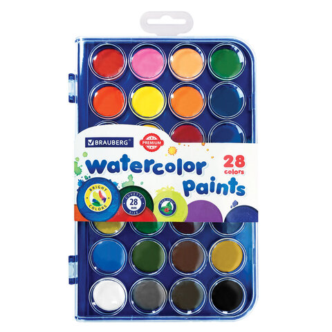 Краски акварельные BRAUBERG "PREMIUM" 28 цветов, круглые кюветы 28 мм, пенал