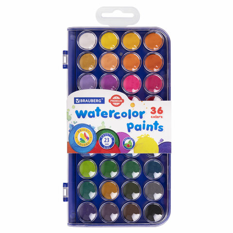 Краски акварельные BRAUBERG "PREMIUM" 36 цветов, круглые кюветы 23 мм, пенал