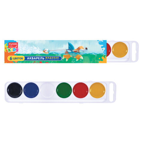 Краски акварельные FORUM "Зверята" 6 цветов, медовые, круглые кюветы, картонная коробка, FA-EV-006-Z