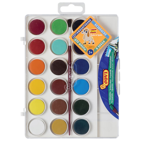 Краски акварельные JOVI (Испания), 18 цветов, с кистью, пластиковая коробка, европодвес