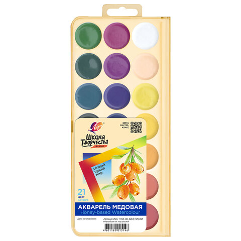 Краски акварельные ЛУЧ "Школа творчества", 21 цв, медовые, без кисти,пластиковая коро, 29С 1758-08