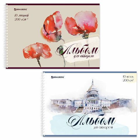 Альбом для акварели А4 40 л., бумага 200 г/м2, гребень, обложка картон, BRAUBERG, Ассорти 2 вида