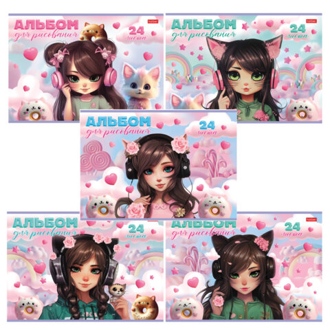 Альбом для рисования А4 24 л., скоба, обложка картон, HATBER, 205х290 мм, "Девочка-кошка", 085145, 24А4В