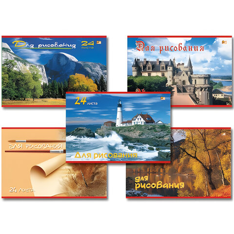 Альбом для рисования, А4, 24 листа, обложка офсет, HATBER ECO, 205х290 мм, "Пейзажи", 004057, 24А4C