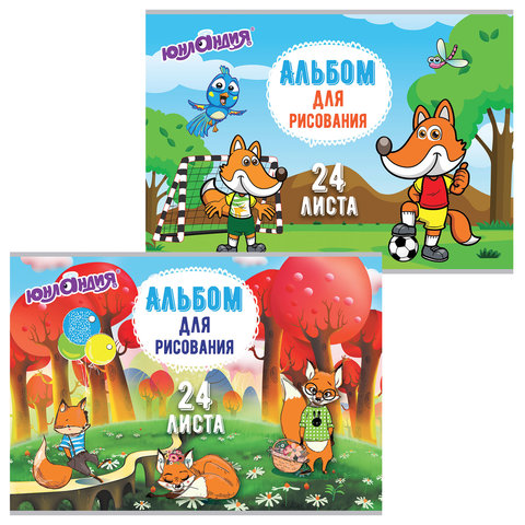 Альбом для рисования, А4, 24 листа, скоба, обложка картон, ЮНЛАНДИЯ, 202х285 мм, "Лисята" (2 вида)