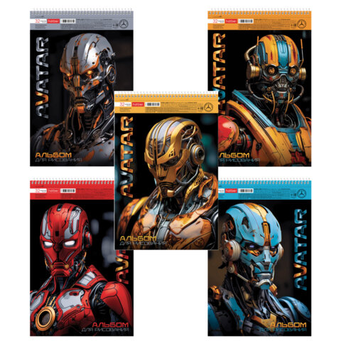 Альбом для рисования А4 32 л., спираль, металлизированный картон, выборочный лак, HATBER, 198х300 мм, "Avatar" (5 видов), 085221, 32А4мтлВсп