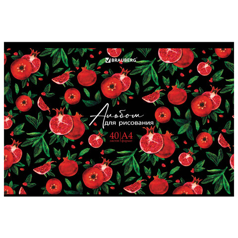 Альбом для рисования, А4, 40 листов, скоба, глянцевый лак, BRAUBERG, 200х285 мм, "Гранаты"