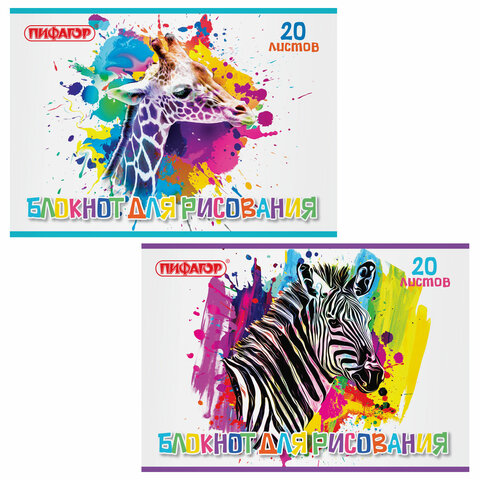 Блокнот для рисования, А4, 20 листов, скоба, обложка офсет, ПИФАГОР, 200х285 мм, "Саванна" (2 вида)