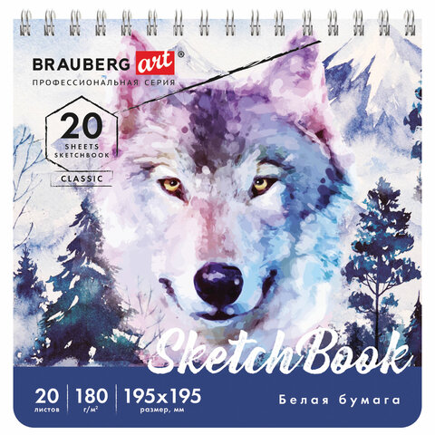 Скетчбук, белая бумага 180 г/м2, 195х195 мм, 20 л., гребень, твердая обложка, BRAUBERG ART CLASSIC