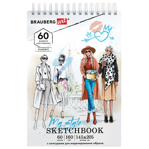 Скетчбук, С ШАБЛОНАМИ ФИГУР, бумага 160 г/м2, 145х205 мм, 60 л., гребень, подложка, BRAUBERG ART CLASSIC