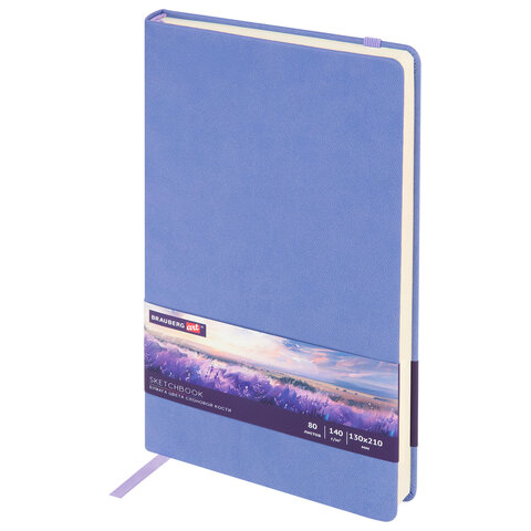 Скетчбук, слоновая кость 140 г/м2 130х210 мм, 80 л., КОЖЗАМ, резинка, BRAUBERG ART CLASSIC, пастель сиреневый