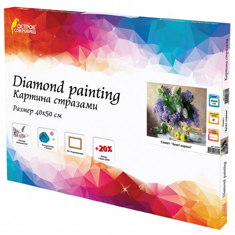 Картина стразами (алмазная мозаика) 40х50 см, ОСТРОВ СОКРОВИЩ "Букет сирени", на подрамнике