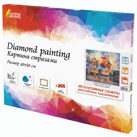 Картина стразами (алмазная мозаика) 40х50 см, ОСТРОВ СОКРОВИЩ "Небо Лондона", на подрамнике