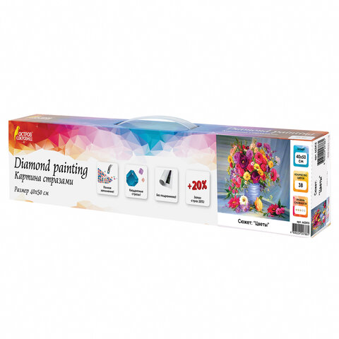Картина стразами (алмазная мозаика) 40х50 см, ОСТРОВ СОКРОВИЩ "Цветы", без подрамника