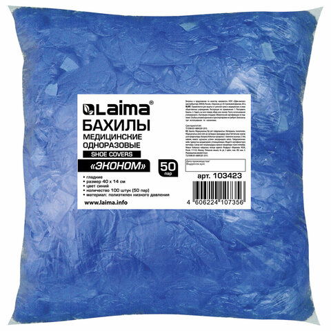 Бахилы КОМПЛЕКТ 100 штук (50 пар) в упаковке, ЭКОНОМ, размер 40х14 см, 2,2 г, ПНД, LAIMA