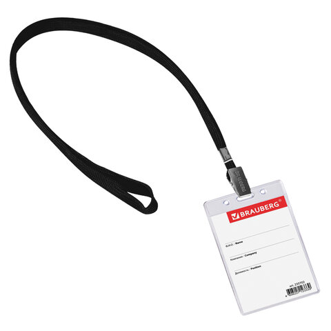 Бейдж вертикальный (90х60 мм), на черной ленте 45 см, BRAUBERG