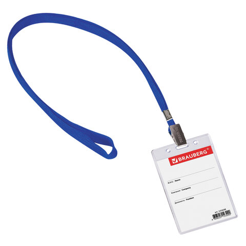 Бейдж вертикальный (90х60 мм), на синей ленте 45 см, BRAUBERG