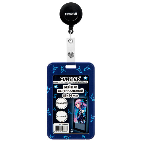 Бейдж вертикальный с 3D-печатью "Аниме" (85х54 мм), с рулеткой, СЛАЙДЕР, FUNSTER (ФАНСТЕР)
