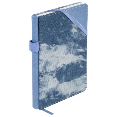 Блокнот А5 135x210 мм BRAUBERG "Denim", ткань/экокожа, резинка, держатель, 80 л., клетка, голубой
