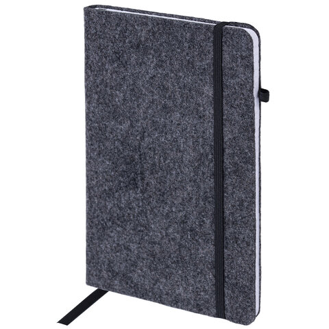 Блокнот А5 138x213 мм BRAUBERG "Voylok", войлок, резинка, держатель, 80 л., клетка, черный