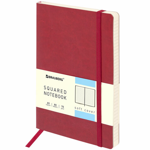 Блокнот А5 (148x218 мм), BRAUBERG "Metropolis Ultra", под кожу, 80 л., резинка, клетка, красный