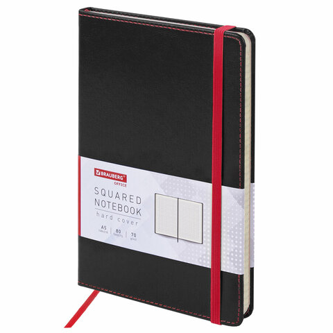 Блокнот А5 (148x218 мм), BRAUBERG "Office", под кожу, 80 л., резинка, клетка, черный