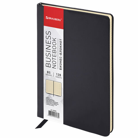 Блокнот БОЛЬШОЙ ФОРМАТ (200х252 мм) В5, BRAUBERG "Income", кожзам, 128 л., клетка, черный