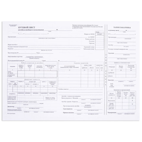 Бланк, офсет, "Путевой лист автобуса не общего пользования", А4 (198х275 мм), СПАЙКА 100 шт., STAFF