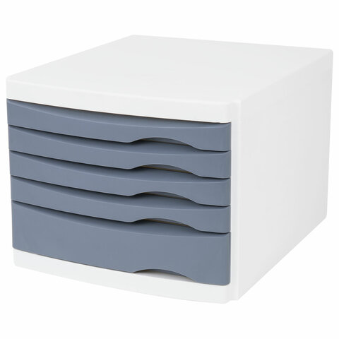 Бокс с 5 выдвижными лотками, корпус светлый, лотки серые, 235х300х355 мм, BRAUBERG "Office-Expert"