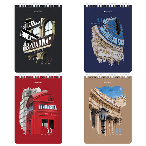 Блокнот А5 (146х206 мм), 60 л., гребень, картон, жесткая подложка, клетка, BRAUBERG, "Города"