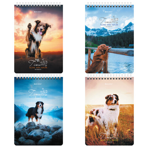 Блокнот А5 (146х206 мм), 80 л., гребень, картон, клетка, BRAUBERG, "Грациозные собаки"
