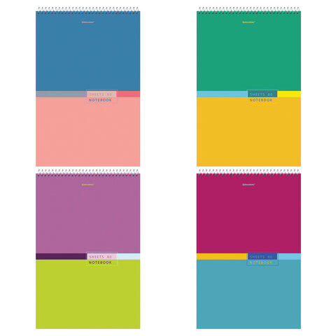 Блокнот БОЛЬШОЙ ФОРМАТ А4 198х297 мм, 80 л., гребень, жесткая подложка, клетка, BRAUBERG, "Color"