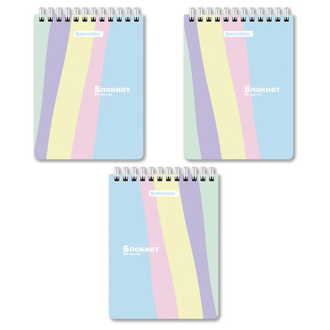 Блокнот МАЛЫЙ ФОРМАТ А6 108х145 мм, 60 л., гребень, картон, клетка, кросс-серия "PASTEL", BRAUBERG