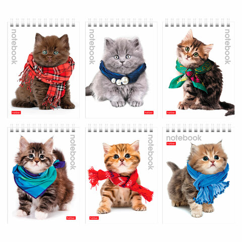 Блокнот МАЛЫЙ ФОРМАТ А6 110х145 мм, 40 л., гребень, лакированная обложка, клетка, HATBER, "Милые Котята", 004667, 40Б6B1гр