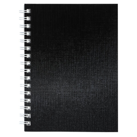 Блокнот МАЛЫЙ ФОРМАТ А6, 80 л., гребень, бумвинил "METALLIC", клетка, HATBER, черный, 086310, 80ЗК6бвВ1гр