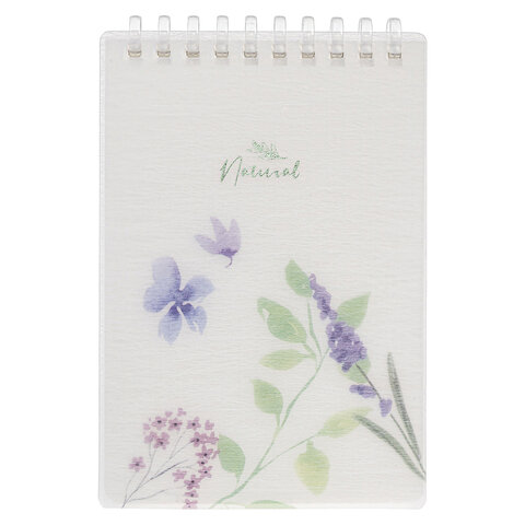 Блокнот МАЛЫЙ ФОРМАТ А6 80 л., мягкий гребень, пластик, фольга, клетка, HATBER, BLUE FLOWERS, 090245, 80Б6A1мс_33478