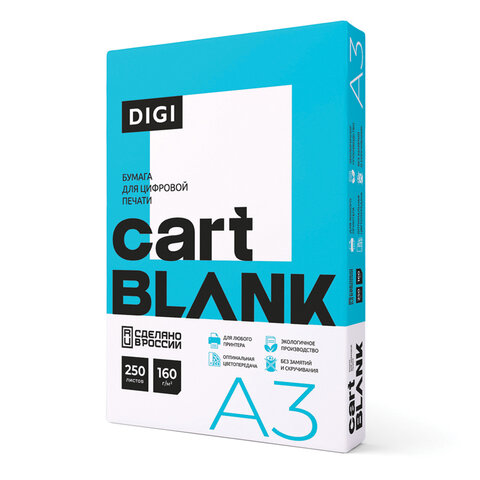 Бумага для цветной лазерной печати БОЛЬШОЙ ФОРМАТ (297х420), А3, 160 г/м2, 250 л., CARTBLANK DIGI, 145% (CIE)