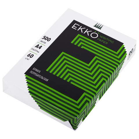 Бумага А4, 60 г/м2, белизна 60%, 500 листов, Россия, ЕККО