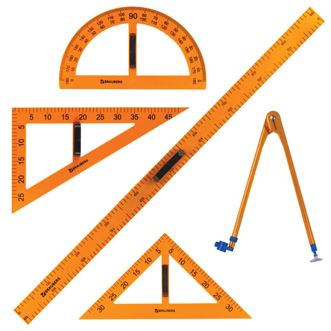 Набор чертежный для классной доски (2 треугольника, транспортир, циркуль, линейка 100 см), BRAUBERG