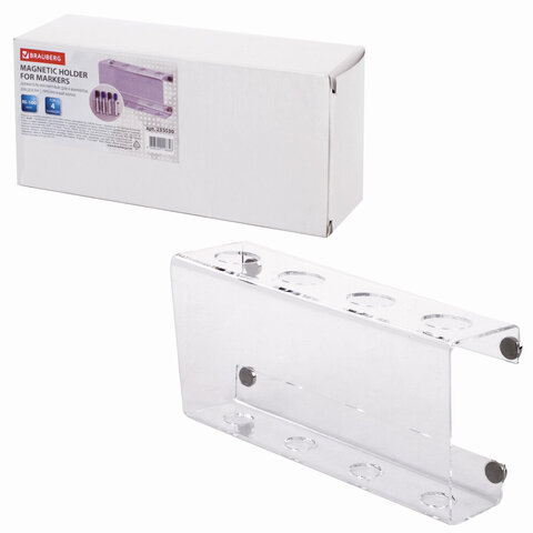 Держатель магнитный для 4 маркеров для доски (85х160 мм), прозрачный акрил, BRAUBERG, РОССИЯ