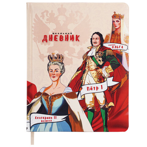 Дневник 1-11 класс 48 л., кожзам (твердая), печать, цветной блок, BRAUBERG, "Великие Люди"