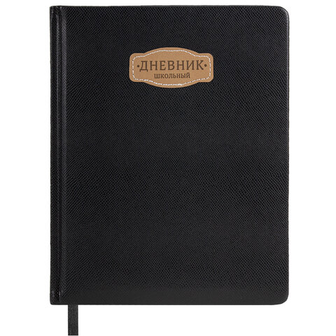 Дневник 1-11 класс 48 л., кожзам (твердая с поролоном), нашивка, BRAUBERG IGUANA, черный