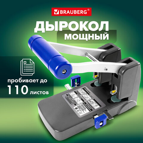 Дырокол металлический МОЩНЫЙ BRAUBERG "EXTRA Heavy duty", до 110 листов, черно-синий