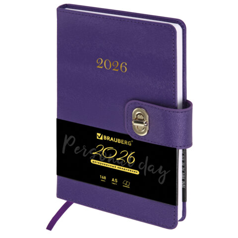 Ежедневник датированный 2026 А5 138х213 мм, BRAUBERG "Elegant", под кожу, застежка, фиолетовый