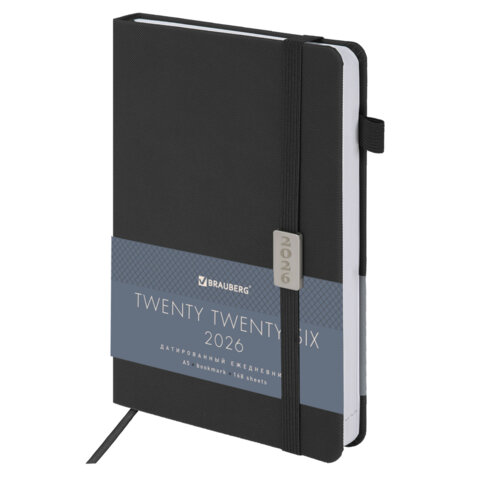 Ежедневник датированный 2026, А5, 138x213 мм, BRAUBERG "Control", под кожу, держатель для ручки, черный