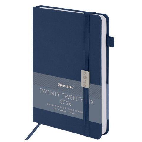Ежедневник датированный 2026, А5, 138x213 мм, BRAUBERG "Control", под кожу, держатель для ручки, синий