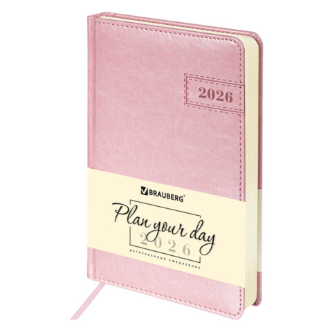 Ежедневник датированный 2026 А5 138x213 мм, BRAUBERG "Imperial", под кожу, розовый