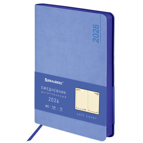 Ежедневник датированный 2026 А5 138x213 мм, BRAUBERG "Metropolis Mix", под кожу, гибкий, голубой