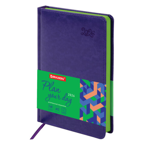 Ежедневник датированный 2026, А5, 138x213 мм, BRAUBERG "Rainbow", под кожу, сиреневый