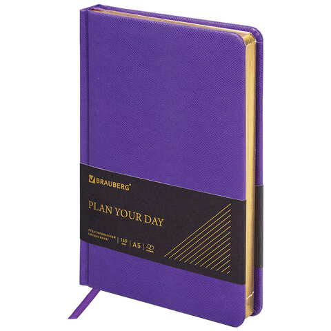 Ежедневник недатированный А5, 138х213 мм, BRAUBERG "Iguana", под кожу, 160 л., сиреневый